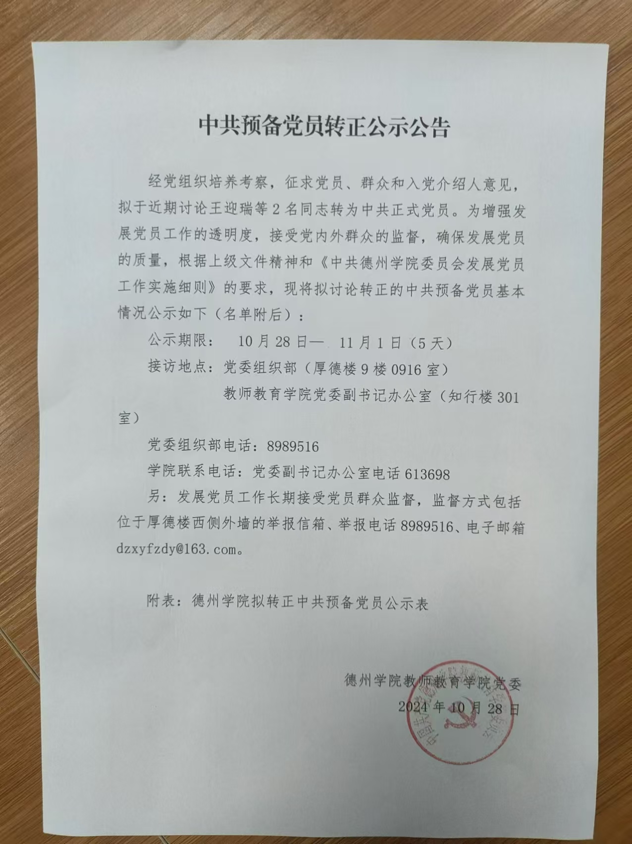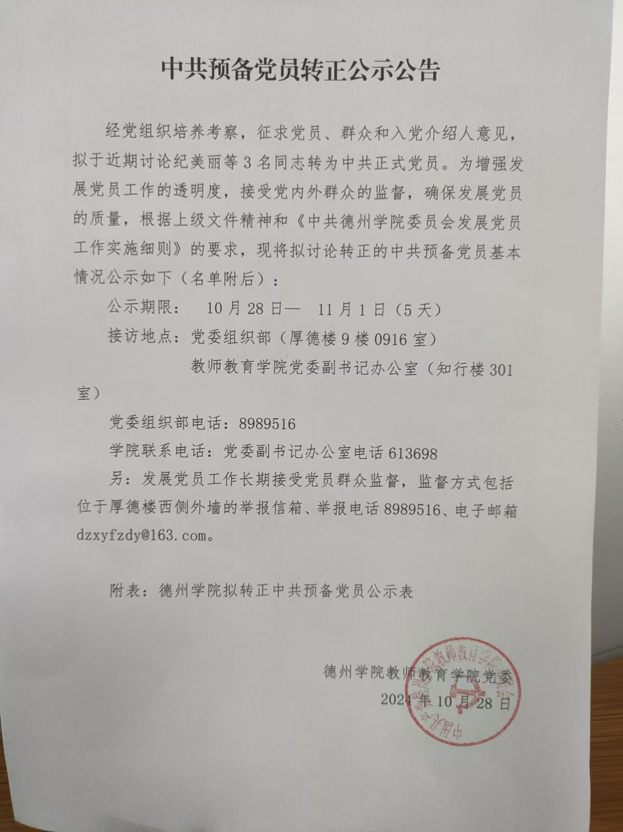 中共预备党员转正公示公告