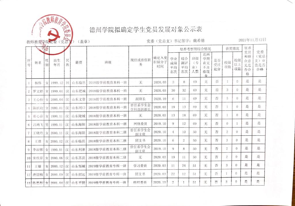 买球官方网站拟确定党员发展对象公示公告