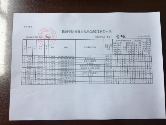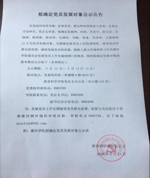 教育科学学院2020年上半年拟确定党员发展对象公示