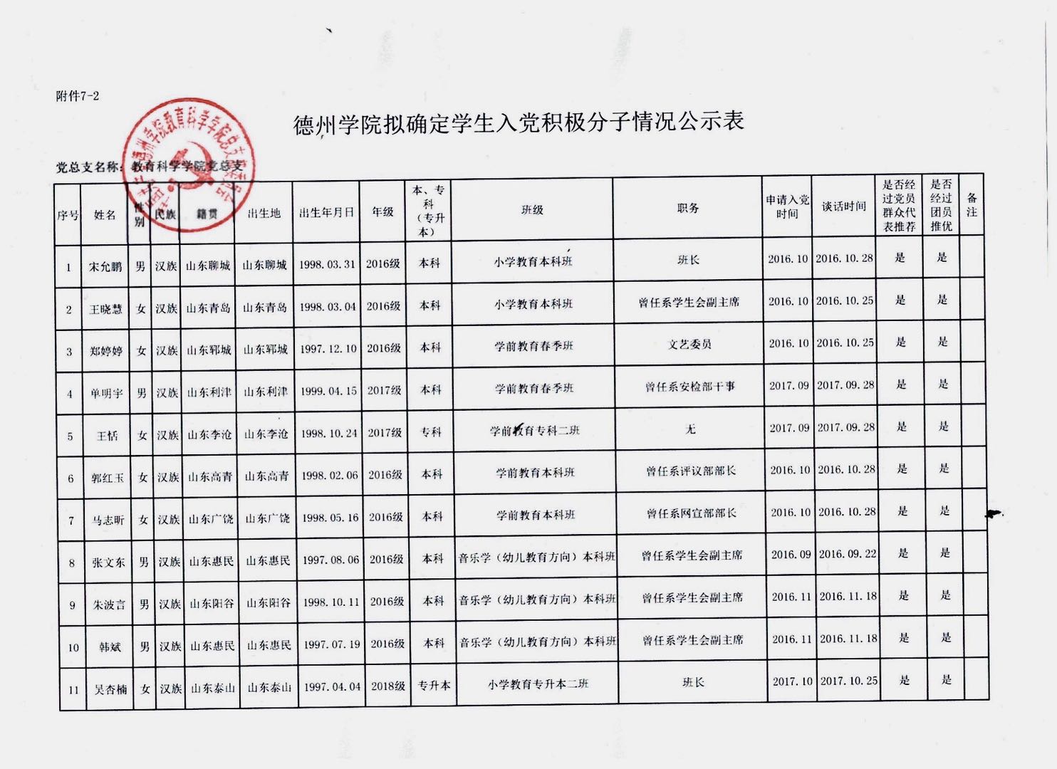 教育科学学院2020年上半年入党积极分子备案公示