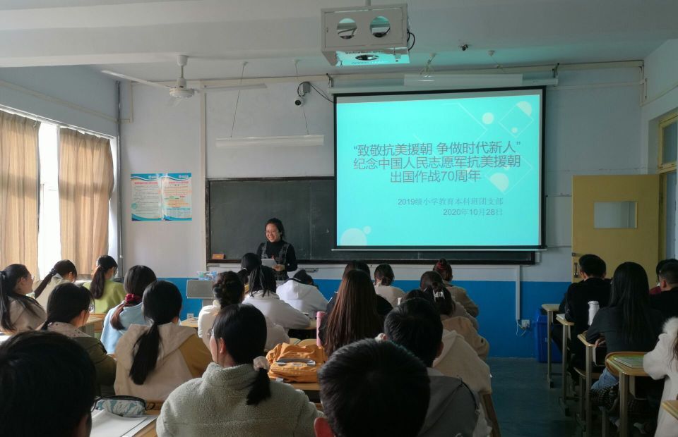 为在团员青年中深入宣传抗美援朝战争的光辉历程,开展爱国主义和革命英雄主义教育,大力弘扬伟大的抗美援朝精神和民族精神,致敬抗美援朝的革命先烈,增进当代青年爱国情怀。买球官方网站于11月2日在知行楼各团支部教室举行“致敬抗美援朝,争做时代新人”主题团日活动。