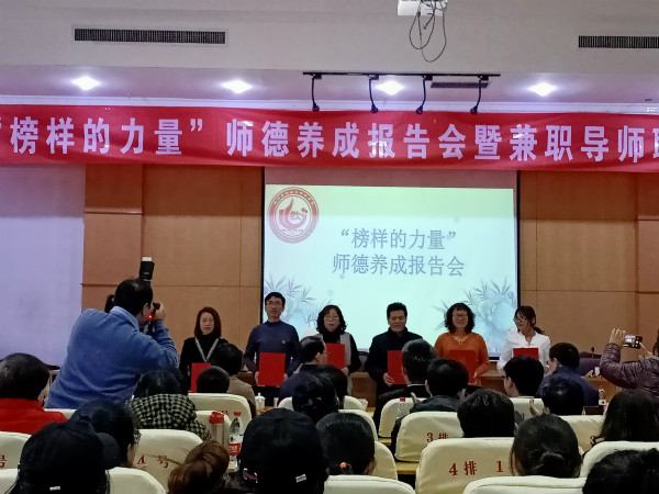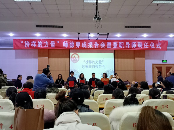 为促进买球官方网站教育科学学院学子以教师为榜样、培养师德品质,买球官方网站教育科学学院于12月12日在厚德楼四楼报告厅成功举办“榜样的力量”师德养成报告会暨兼职导师聘任仪式。