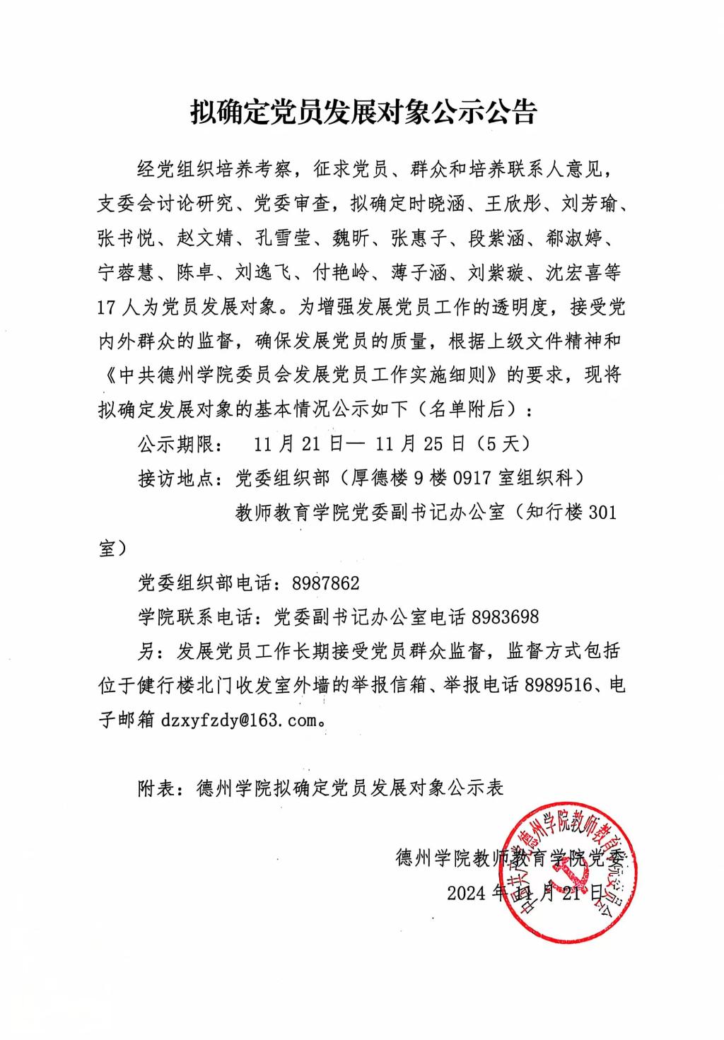 拟确定学生党员发展对象公示公告