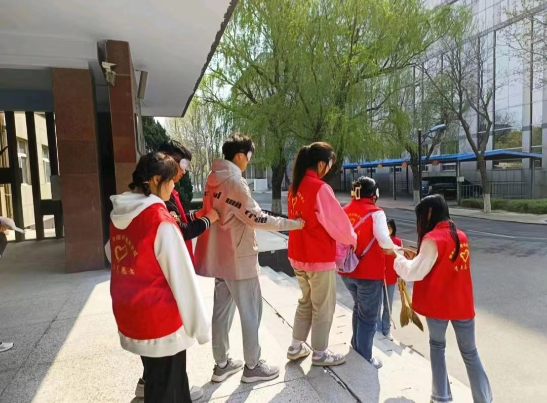 活动启动后,同学们在志愿者悉心布置的“盲行体验区”集合并完成签到。在体验环节,同学们纷纷佩戴眼罩,将双眼遮蔽。随后,在志愿者的悉心引导下,同学们排成一列,后者握住前者衣物,借助触觉与听觉探索前行。行进过程中,同学们需小心翼翼地感受地面的凹凸与质地,以判断路况。经过同学们的团结协作,他们成功穿越了阶梯、人行道等区域,深刻体会到了盲人在生活中所面临的困扰与挑战。活动结束后,同学们齐聚一堂,共同探讨感悟,并分享了此次活动的心得体会