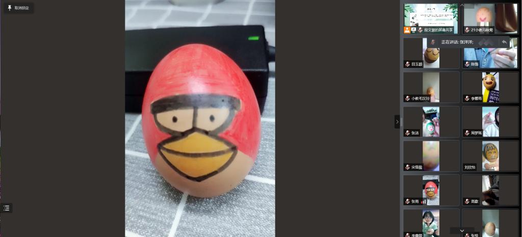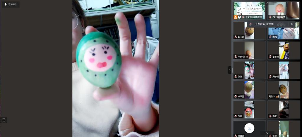 参与者用一双巧手挥动五彩画笔,在自己准备的鸡蛋上勾勒出一条条细腻自然的线条,绘出春天的色彩和对未来的希望,并与身边的小伙伴共同体验碰蛋文化的乐趣。两个鸡蛋相互“厮杀”的背后,是同学们对清明节文化的切身体验。同学们通过用画彩蛋、装饰彩蛋、碰鸡蛋的形式来迎接清明节的到来,表达对美好生活的向往和对生命的敬畏,加深了对传统民俗的了解。