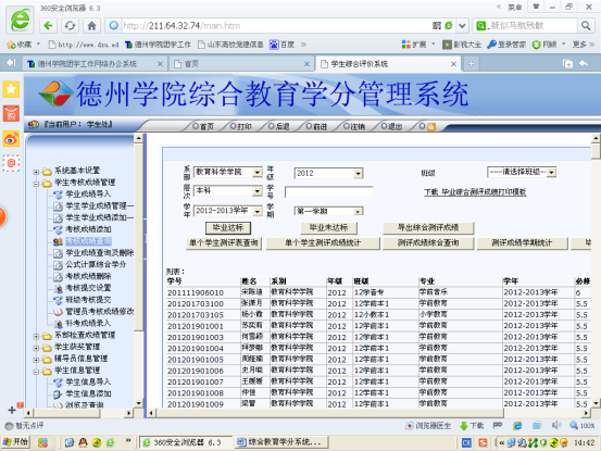 毕业生综合测评成绩单打印步骤请查看综合教育学分系统主界面右侧通知公告栏。如果学生基本信息录入时,未录入学生层次(本科/专科/专升本),成绩单打印、不合格学生筛选等功能无法实现。添加学生层次(本科/专科/专升本)方法: