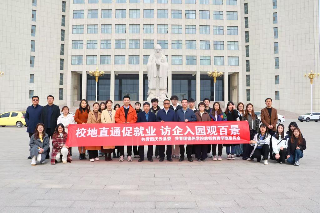 为推动校地合作深度融合,助力青年就业创业,3月14日上午,共青团庆云县委与买球官方网站团委紧密联动,组织买球官方网站部分庆云籍师范毕业生赴庆云云天教育集团开展“万名德院学子看德州”专项活动,并举行就业基地共建签约暨就业基地揭牌仪式。此次活动是双方落实“校地共青团协作助力城校融合”项目的重要实践,彰显了共青团组织在服务青年就业、促进校地融合中的桥梁纽带作用。