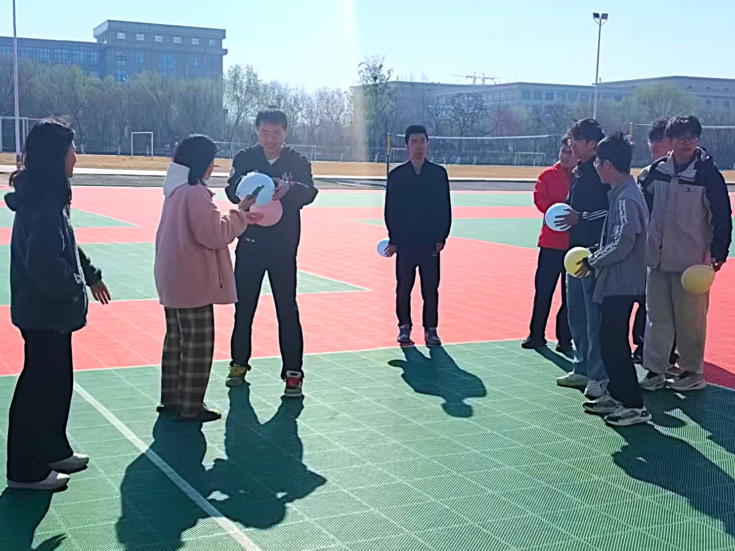 本次活动以创意十足的“踩气球大战”为核心项目,吸引了同学们的积极参与。活动筹备阶段,负责人精心规划比赛区域,为参赛者配发彩色气球。比赛伊始,整个操场瞬间化作欢乐的竞技场:有的同学采取防守策略,以灵活的步伐在边缘周旋;有的则主动进攻,凭借敏捷身手突袭对手;战术配合时,队友间默契的掩护与策应充分展现了出色的团队协作能力。尽管战况激烈,同学们始终践行“友谊第一”的宗旨,被淘汰的同学也积极为同伴热烈喝彩。此起彼伏的气球爆破声与欢笑声将现场气氛不断推向高潮。