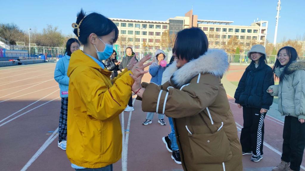 成员间通过简单自我介绍认识彼此,见面会以游戏的形式展开,进行运送气球、推手、踩气球等各项团建活动,现场气氛活跃,热情高涨。小组成员相互配合,团结协作,背靠背合作运送气球提高小组成员间的默契程度,增进了成员之间的感情。