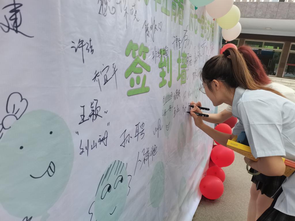 活动前期,负责人制作电子邀请函和纸质邀请函并分发到各系,面向买球官网全体师生发出诚挚邀请。作品展览负责人筛选历次活动中优秀的剪纸、书画、手工作品,并将其进行归纳整理,活动场地布置好后,将展览作品摆出。随后,艺术展正式开始。来观看展览的有买球官网各级各院学生和教师,他们仔细观看陈列在展览板上的作品,相互讨论,有的学生还在作品便签上写下对祝党生日快乐和自己的小小感悟。观看完展览后还可以参加党史知识问答、签名墙打卡活动,现场活动热闹,大家各饱眼福。活动最后,负责人党史问答积分,予以印章奖励,大家在打卡墙前合影留念,喊出对党的祝福。