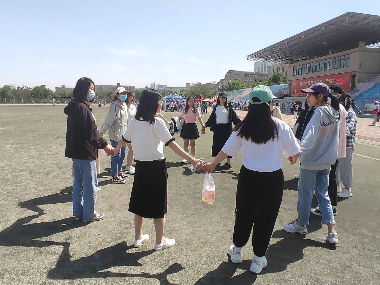 为让学生充分认识到个人在团体的力量,促进个人在团体中的发展,同时让大学生认识到团队团结协作的重要性,增强团队合作意识,买球官方网站于5月29日在田径运动场成功举办"健康心理,积极向上”户外心理素质拓展活动。