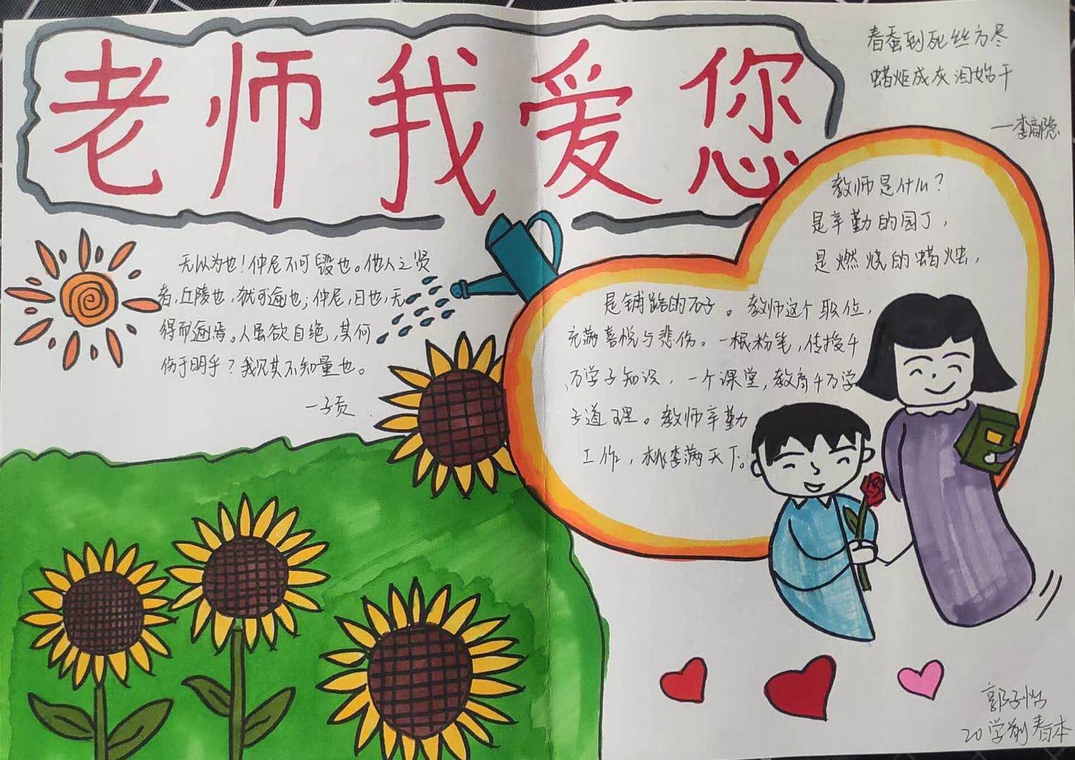 活动伊始,由活动负责人进行点名签到。随后,在活动负责人的带领下同学们用自己的形式表达了对老师的感恩之情,并通过拍照留下美丽的瞬间,然后有活动负责人收取作品并依据评分标准进行评奖。最后,由活动负责人交流心得体会,总结本次活动的不足,选取出的优秀作品进行宣传。