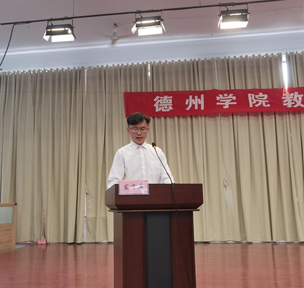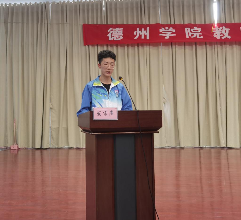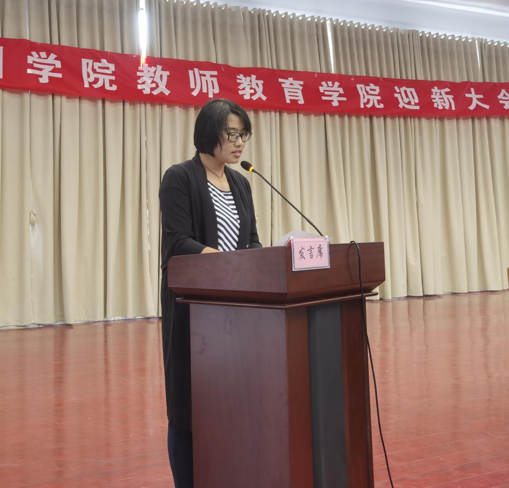 17级学前教育春季本科班的何涛作为老生代表发言。他分享了自己四年的学业与生活体会,希望新生们满怀希望,奔向理想之美;严肃活泼,享受知识之美;积极乐观,收获健康之美。
