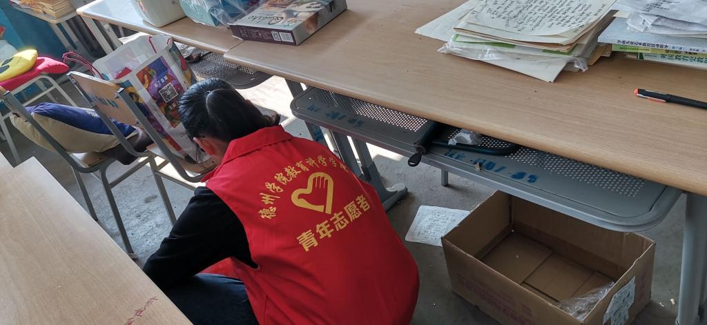 活动伊始 ,各位志愿者了解负责教室卫生情况,之后带好卫生工具,穿好了象征着志愿者身份的红马甲。按照提前分好的小组,各位志愿者投入到水深火热的志愿服务活动中,他们擦去教室中桌子椅子的灰尘以及死角等处的垃圾,扫去教室内的尘土,帮助考研的学生整理桌面上的书籍......很快,志愿者完成了工作,各小组组长对负责区域进行检查,对不合格的地方进行二次打扫,最终他们将卫生工具整整齐齐地摆放回原处,活动负责人及时做好了总结。