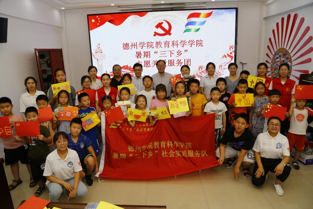 为了深入学习贯彻习近平新时代中国特色社会主义思想,以庆祝中华人民共和国成立70周年、纪念五四运动100周年为契机,引领志愿者树立服务奉献意识和爱国主义意识,用实际行动主动担当历史使命,买球官方网站教育科学学院于7月18日在德州市东风社区开展暑期“三下乡”‘萤火虫’志愿关爱服务团德州站活动。出席本次活动的领导有买球官方网站副校长张存峰、买球官方网站团委书记张月青、副书记丁爱玲、买球官方网站教育科学学院党总支书记冯立顺、院长王萍及团总支书记闵令珍。