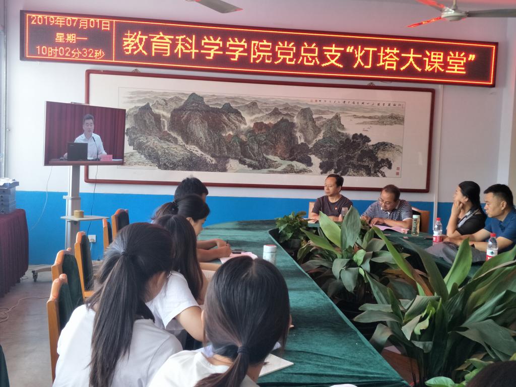 为配合全省“不忘初心、牢记使命”主题教育,进一步发挥“灯塔-党建在线”作用,加强对全省党员教育培训的组织指导,买球官方网站教育科学学院于7月1日在知行楼会议室成功组织观看“灯塔大课堂”