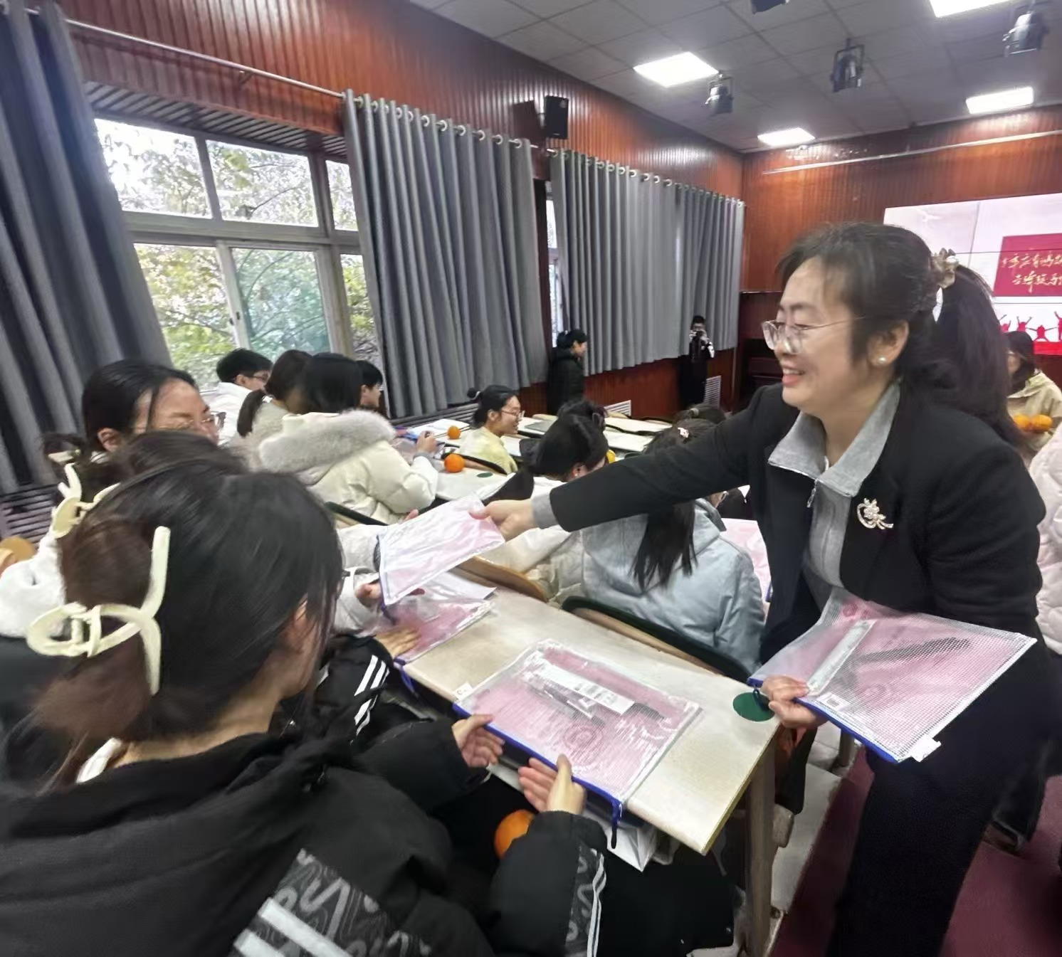 学院领导和考研导师代表还为每一位考研学子送上了精心准备的考研文具大礼包以及寓意一战 “橙” 硕的橙子,满满的心意与美美的寓意,期望学子们都能心想事 “橙”,顺利上岸。
