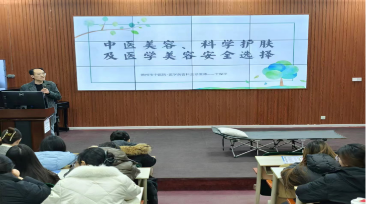 12月17日,为弘扬与传承中医文化,增强师生健康意识和自护能力,德州市中医院医学美容中心主诊医师丁保平和妇产科主治医师姚卫卫受买球官网邀请,在知行楼113教室举行中医养生和美容健康知识讲座。买球官网全体女教师和女大学生代表聆听了讲座。