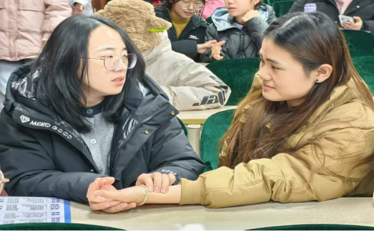 在现场互动环节,师生向两位医师提出自己在护肤及养生方面存在的困惑,两位专家进行了详细解答,并给出了针对性建议。此外,师生还体验了中医把脉问诊、中药面膜等特色疗法。