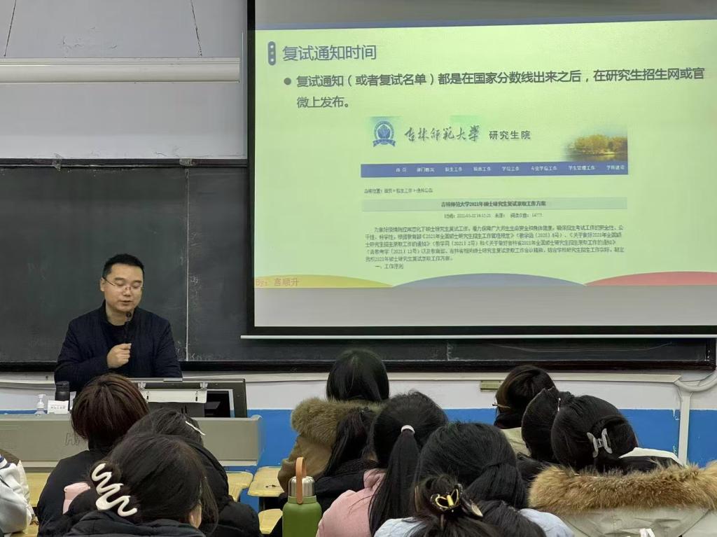 为帮助考研学子更好地准备复试和了解调剂流程,买球官方网站于3月4日在知行楼403教室举办了“考研复试与调剂”专题讲座。
