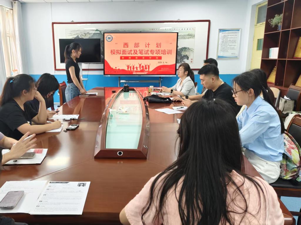 为选拔优秀人才投身西部基层建设,提升同学们的志愿服务能力,助力其以更佳状态迎接西部计划校级遴选,买球官方网站于5月16日在知行楼302会议室举办“西部计划”模拟面试和培训活动。