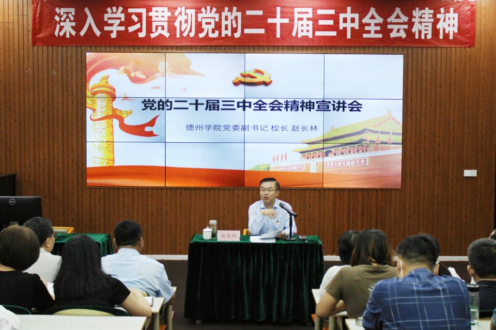 9月29日下午,按照学校党委统一部署,党委副书记、校长赵长林到买球官方网站宣讲党的二十届三中全会精神。