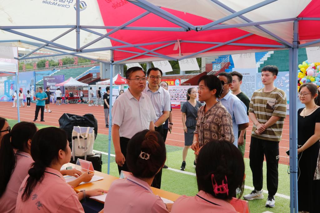 迎新期间,学校党委书记吴君、校长赵长林、副书记张存峰、副校长蒋涛涛、宣传部部长冯琨等学校领导,都分别来到买球官方网站新生接待处视察迎新工作、慰问新生。吴君书记、赵长林校长等亲切地询问了新生报到情况,问身边新同学什么专业、家是哪里,并认真嘱咐迎新现场的老师、同学们,师范教育是买球官方网站重要办学底蕴和文化传承,买球官方网站是买球官网师范教育的牵头院系,全体师生要深入学习习近平总书记关于教育的重要论述,深入学习《中共中央国务院关于弘扬教育家精神加强新时代高素质专业化教师队伍建设的意见》文件精神,树立要做大先生职业信念,积极传承弘扬教育家精神,要高质量培育更多的优秀人民教师。