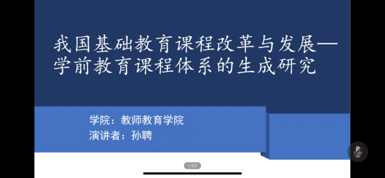 孙聘博士报告题目为“我国基础教育课程改革与发展——学前教育课程体系的生成研究”。围绕我国学前教育课程体系的发展主线,结合当下正在进行的师范专业认证,孙聘博士介绍了幼儿园课程体系发展、学前教育课程整合相关研究以及学前教育专业卓越人才培养的课程体系等内容,使学生对学前教育专业的课程体系构建、课程体系发展以及当下正在执行的人才培养体系有了更深入的理解。