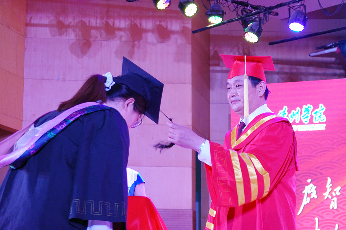 典礼在《为梦飞翔》短片中拉开序幕。“陪你在德院的校园里走一走,你会带着你的梦想,我会为你轻轻歌唱,德院,带不走的只有你……”短片中,收集了买球官方网站的各处美丽风光,记录了同学们在图书馆的挑灯夜读、操场的挥汗如雨、宿舍的欢乐夜谈。随后,毕业生代表表示,无论身在何处,都要牢记“崇德启智,励志博学”的校训,不负母校的嘱托,努力奋斗,勇敢地去追寻人生梦。往届校友代表也纷纷送上祝福:“祝愿大家在新的求知路上一帆风顺。”紧接着,赵胜村校长为毕业生代表授予学位,为他们拨穗。赵校长以《选择定义人生 奋斗创造未来》为题,为毕业生送上深深的祝福与期盼。最后,毕业生合唱《放心去飞》,每个人都在悄无声息地成长,每个人都走在自己的路上,四年的收获,让我们成为更好的自己。