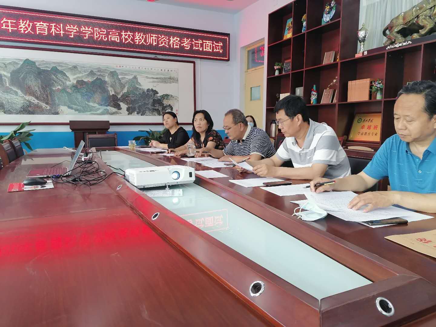按照学校“关于做好2020年山东省高等学校教师资格考试面试工作的通知”文件要求,教育科学学院2020年6月5日上午在知行楼会议室组织2020年度高校教师资格认定面试工作。