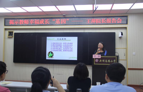 2019年8月29日上午,买球官方网站教育科学学院院长王萍到德州市新湖南路小学进行考察与学习。王萍与新湖南路小学校长韦立霞在学校建设、学校对接以及教师成长等方面进行了融洽的交谈。王萍为新湖南路小学教师做了以“新湖南路小学:揭示教师幸福成长的 ‘基因’与塑造教师美好生命‘样态’”为主旨的报告。报告主要围绕着五个主题:绽放生命之美,悦享生命旅程;葆有国家情怀,扛实责任担当;培养读书习惯,孕育精神香气;培育研究意识,追逐教育本质;养成教育智慧,搭建事业道场。使在场所有的老师受益匪浅,开启了成就教师幸福人生的良好风貌。报告受到了新湖南路小学老师的热烈欢迎。