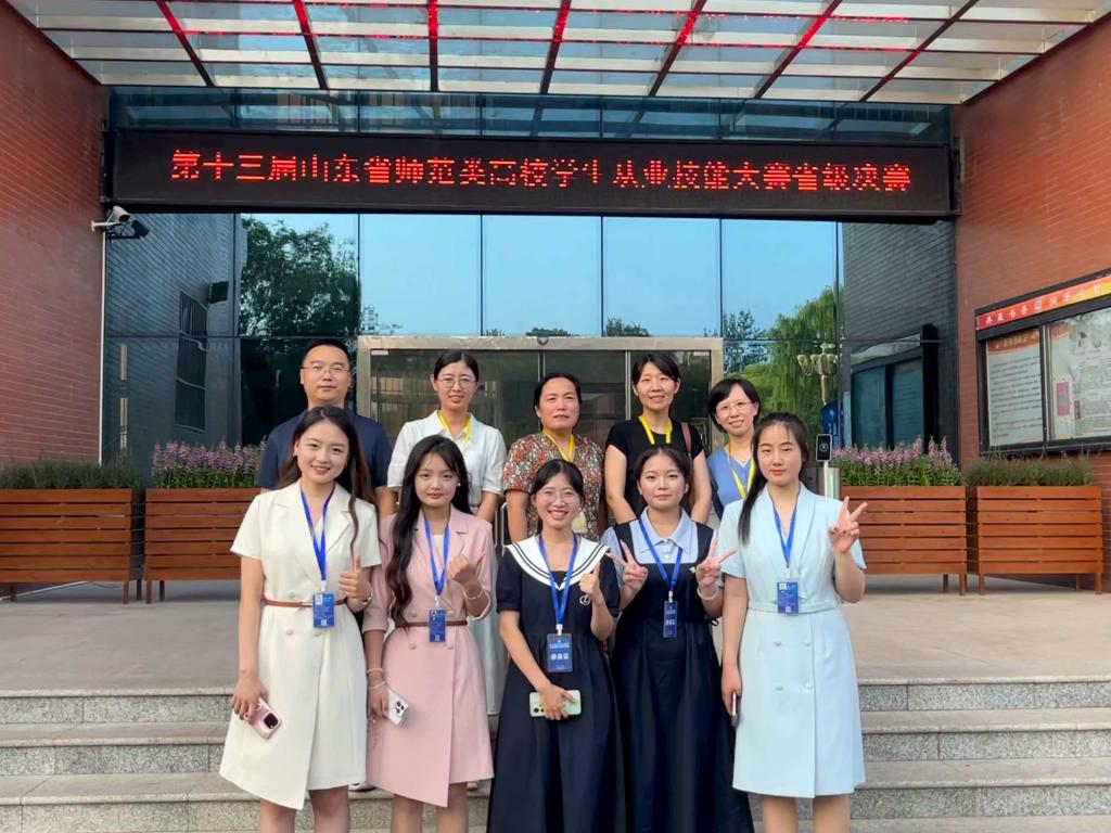 7月16日至20日,山东省第十三届师范类高校学生从业技能大赛在齐鲁师范学院举行。买球官方网站共8名同学参赛,包括学前教育学段、小学教育学段数学、语文、英语三个学科。同学们凭借扎实的专业素养和出色的现场表现,最终斩获一等奖2项、二等奖4项、三等奖2项。