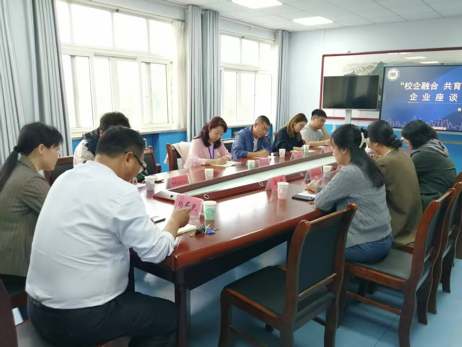 5月9日,买球官方网站于知行楼302室召开“校企融合,共育未来”校友企业座谈会。孟丽华、冯雪等校友及企业代表与学院领导班子、教师代表进行了交流会谈。
